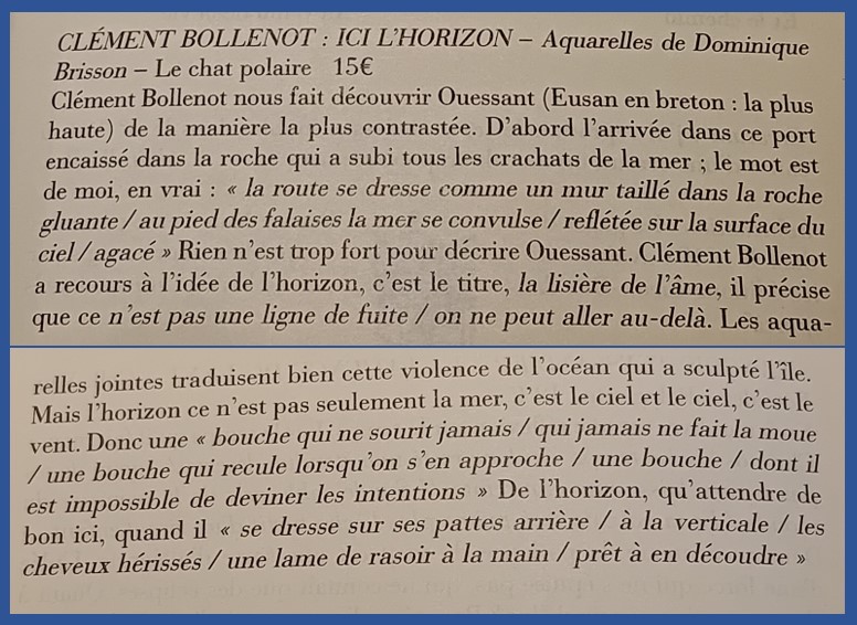Dans le 195e numéro de la belle revue Verso « l’air, les mots », Alain Wexler nous livre ses retours sur ses dernières lectures poétiques parmi lesquelles celle de mon dernier recueil, Ici l’horizon. C’est un grand plaisir d’y lire les mots toujours très justes d’Alain Wexler qui fut le premier à publier mes textes et qui a d’ailleurs publié quelques extraits d’Ici l’horizon bien avant sa parution aux éditions du Chat polaire. Merci à Alain Wexler et à la revue Verso et voici la chronique :