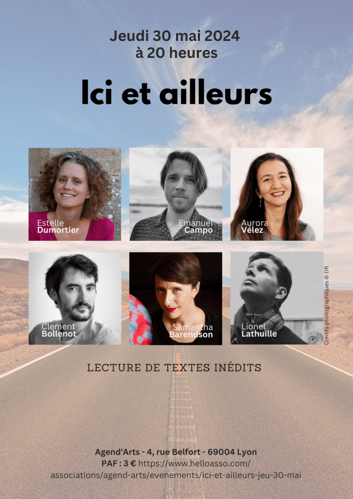 Lecture poétique en compagnie de Samantha Barendson, Emanuel Campo, Aurora Vélez, Estelle Dumortier et Lionel Lathuille. A 20h à Agend’arts (Lyon 4e)